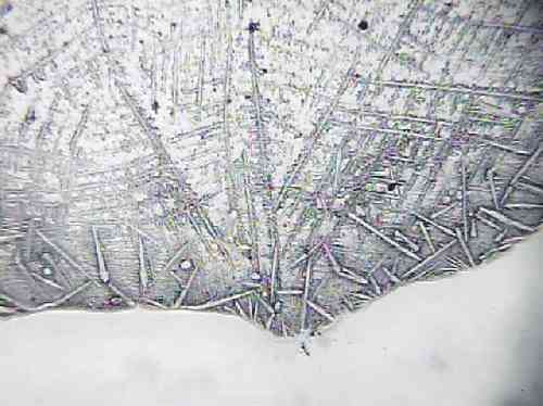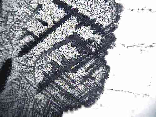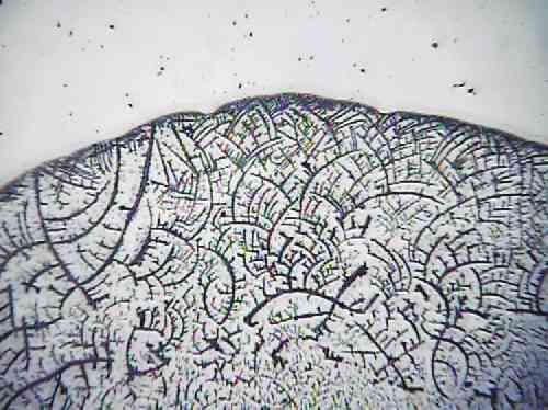 The crystals are mostly linear and hardly branched. At times the crystals separate entire portions of the picture, which reveals a tendency of cancer: isolated tissue which is no longer in communication with the rest of the organism and shows an independent, uncontrolled growth process. Such a crystallization picture is a clear indication of cancer, as these signs are always present with cancer patients. Since these signs appear in the blood crystallization picture before the actual tumor appears, this method gives the possibility of early detection and treatment of cancer. The lower right picture shows thick, coarse crystals, which are always present where there is a tendency to deposit in the blood vessels or organs. In this case, a patient with stroke. With blood crystallization analysis deposition in the blood vessels can be diagnosed early on and thereby, through appropriate prophylactic treatment, the risk be eliminated in time.
